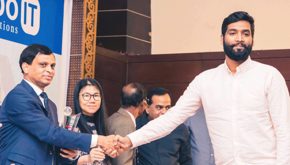 Managing Director of Beyond Innovations & Technologies Limited, Mr. Mossaddique Ahsan is seen accepting Best Reseller award on behalf of the company.